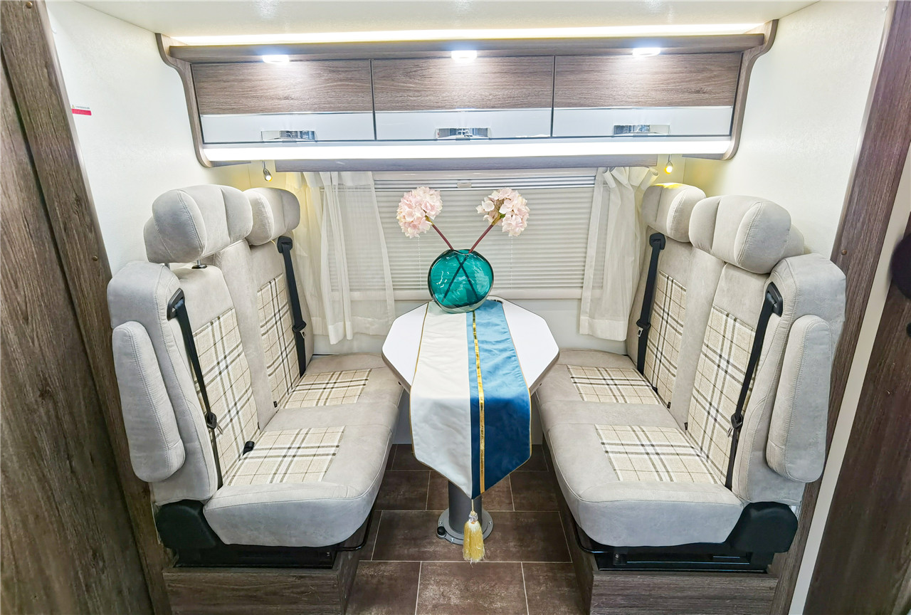 | 正副駕駛椅包 (中間菱形格) | 豪華衛(wèi)浴間 (ABS吸塑工藝) | 升降桌板(進(jìn)口單腿) | ||||||